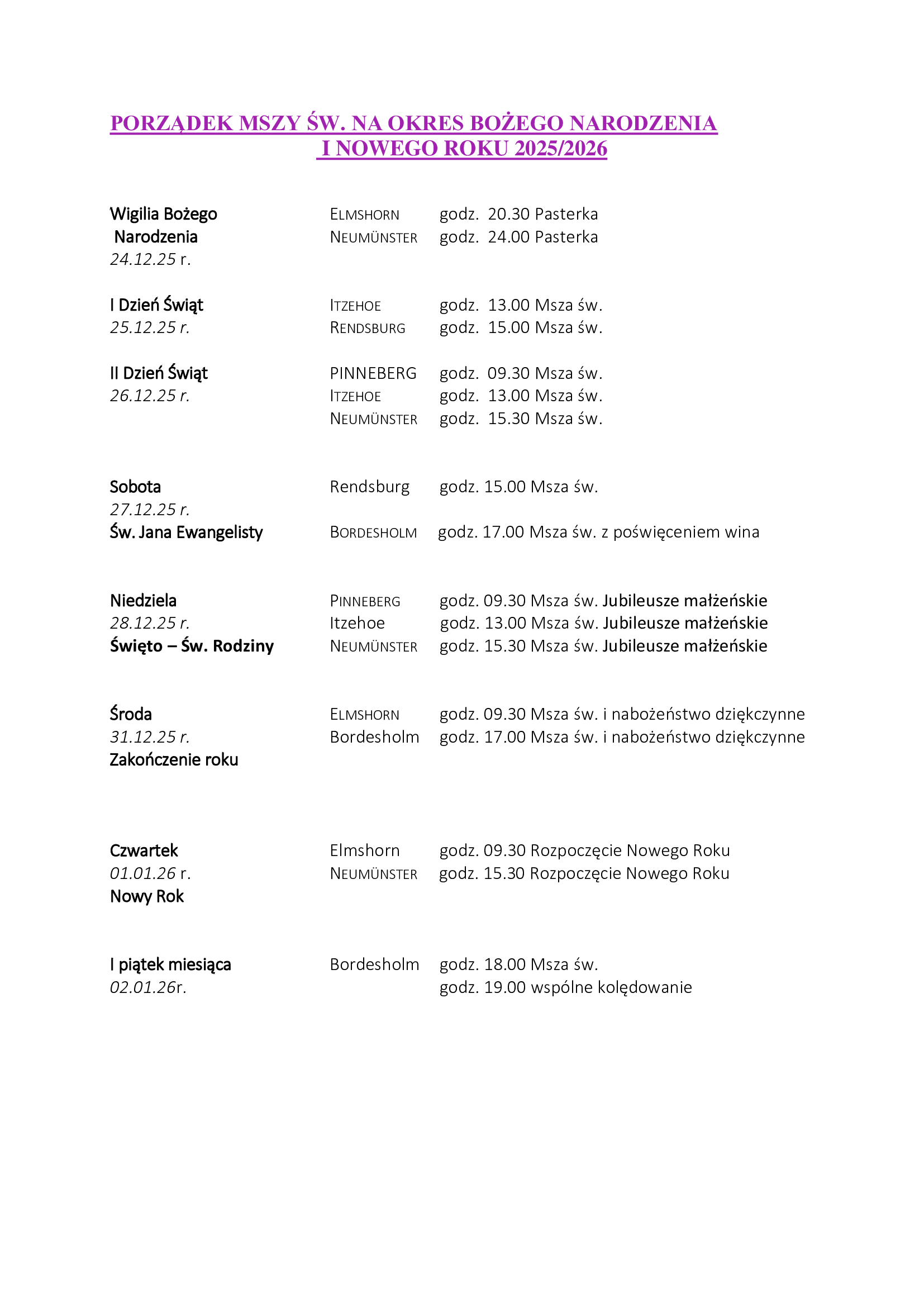 Porządek Mszy św. w okresie Świąt Bożego Narodzenia